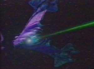 This fighter was widely used during the Earth/Minbari war. It has three wings branching out from the main hull, each one with a rear thruster. It also has 3 large plasma beam weapons in the center of the main hull. The ship is also equipped, as are all Minbari craft, with a distortion field that makes it very difficult for enemy weapons to lock onto and track the ship.
